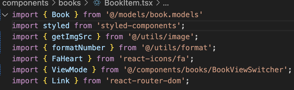 이제 상대경로로 import 하고 있는 파일로 가서 절대경로로 적어주면 된다. 참고로 상대경로와 절대경로를 함께 사용해도 문제가 없다고 한다.