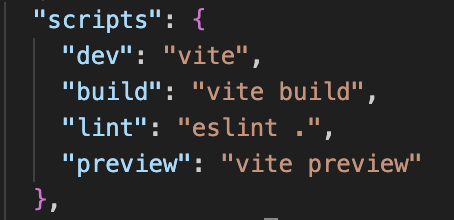 - preview: 빌드된 결과물을 로컬 서버에서 미리보기로 실행하는 명령어 (빌드 후 최종 배포 전에 동작을 미리 확인하기 위해 사용)